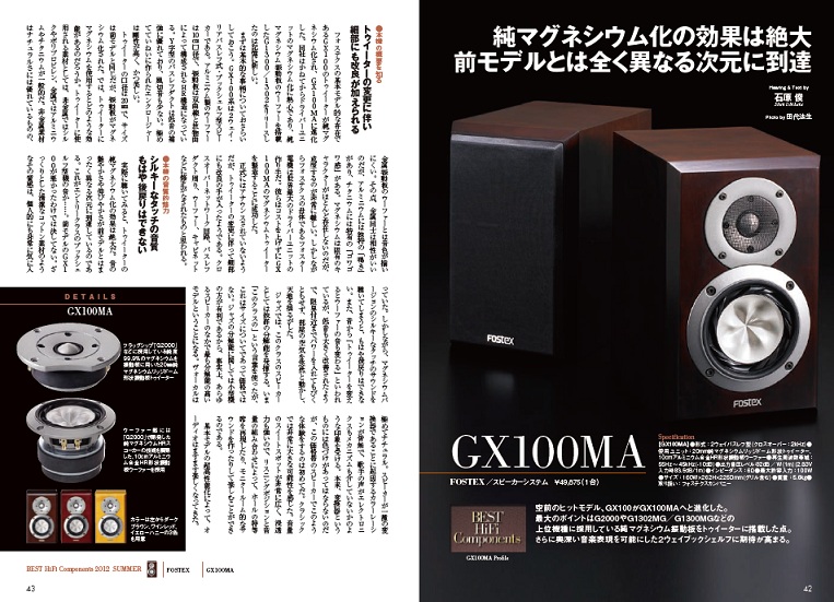 - フォステクス、純マグネシウムトゥイーター搭載ブックシェルフ「GX100MA」 2012/03/09
