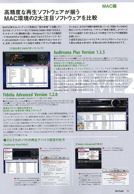 Mac編ではDSDも対応するなど話題のAudirvana PlusとDAW的要素も持ったFidelia Advancedの機能性を徹底的に比較