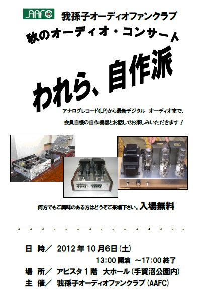 我孫子オーディオファンクラブの10月6日開催イベントのパンフレット