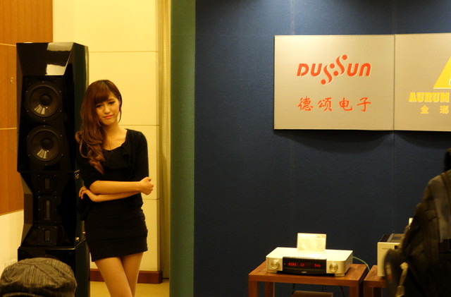 DUSSUNブース。コンパニオンがいるのが日本のオーディオショウとの大きな違いだ