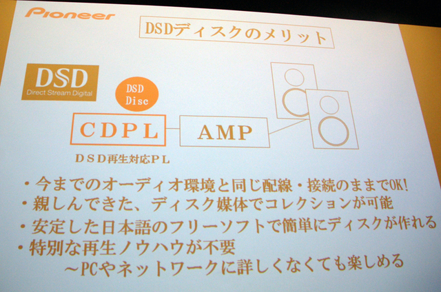 DSDディスクのメリットは通常のオーディオと同じように扱えること、と説明した