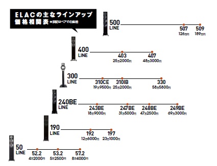 AA148号に掲載しているELACの主なラインアップと価格相関表