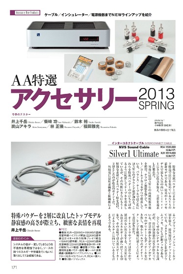 AA148号に掲載の「特選・新製品アクセサリー」。NVS Sound Cableからは最高峰モデル「Silver 1 Ultimate」も登場