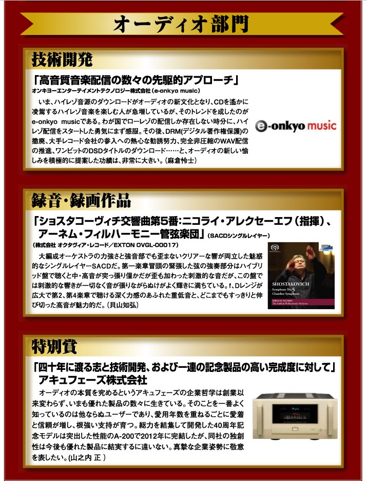 オーディオ部門の受賞内容