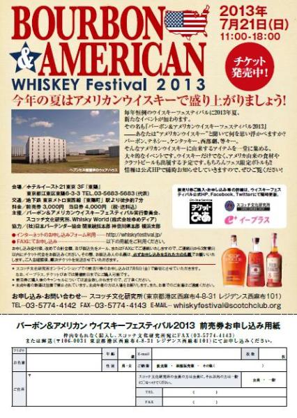「バーボン&アメリカンウイスキーフェスティバル2013」のチラシ