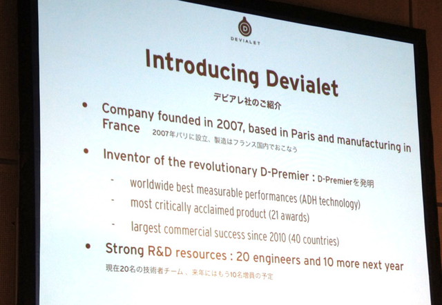 DEVIALET社の紹介。2007年設立の新進ブランドだ