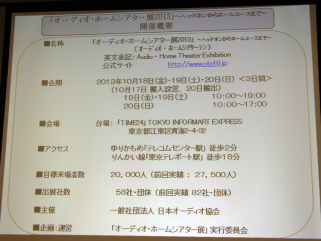 「オーディオ・ホームシアター展 2013」10月18日から3日間開催