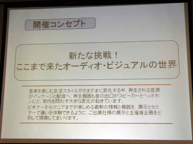 開催コンセプトは「新たな挑戦!ここまで来たオーディオ・ビジュアルの世界」