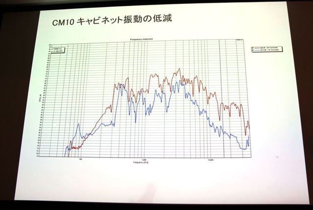 様々な工夫により、CM10は既存モデルに比べキャビネット振動を大幅に低減させた