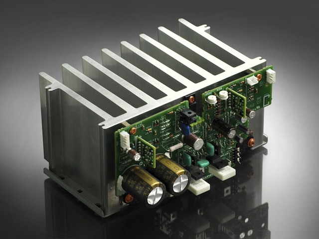 大型ヒートシンクに直に設置されたパワーアンプ部