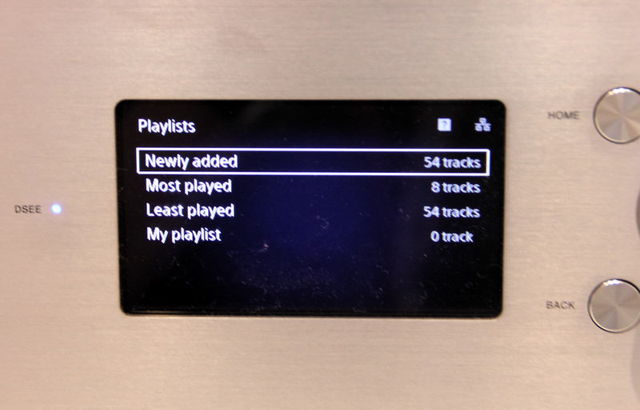プレイリストの表示画面。最近加えたもの、よく再生されているものなどを表示することも可能だ