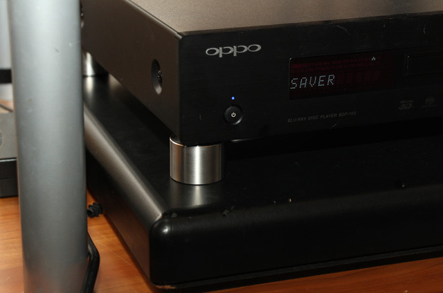 OPPOのユニバーサルプレーヤー「BDP-103JP」の下にIS-HR30を使って音の変化を確かめるデモも行われた