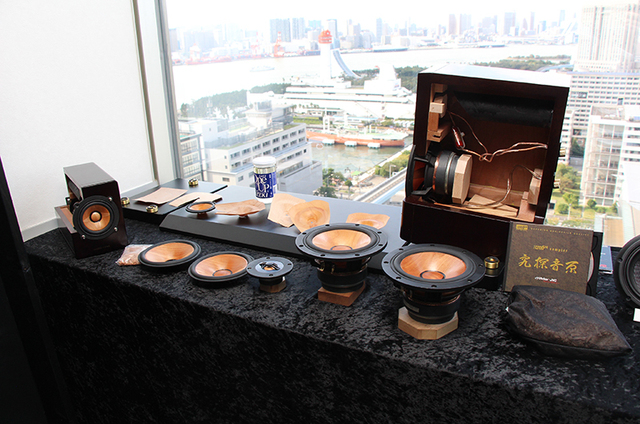 ウッドコーンスピーカーユニットや、新Kシリーズに採用されたパーツなども展示されている