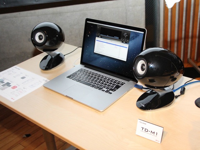 Mac Book ProやiMacと組み合わせての展示が行われた。デスクトップ環境での本格的なオーディオ再生を目指し、TD307IIとTD508MKIIとの中間となるエンクロージャーのサイズが採用されたという