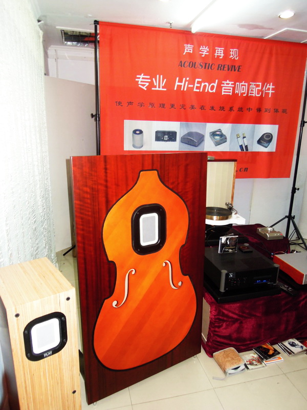 日本を代表するフラットスピーカーFALも参加。コントラバスを形どった平面バッフルにユニット1基を搭載しただけなのに、解像度の高い重低音を響かせ、来場者を驚かせていた。同ブースではACOUSTIC REVIVEやSPECの製品も展示。関心を集めていた