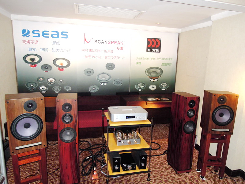 SEASやSCANSPEAK、morelといった定評あるユニットメーカーが一堂に集まったブースでデモンストレーションも行っている