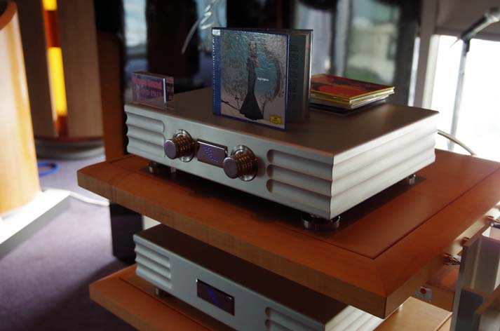 LINE AMPLIFIER(¥5,355,000)はRCA×3、XLR×2の入力端子と、RCAとXLR各1系統の出力端子を持つ