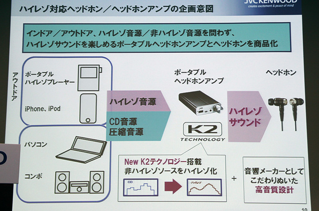 JVCが5月に発売するポタアンは「New K2テクノロジー」搭載 − 「ハイレゾ」ロゴ戦略など発表会詳報