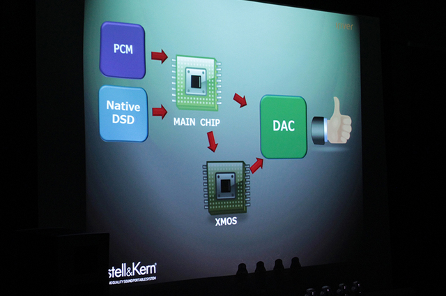 メインCPUがネイティブDSD信号を受けたあと専用チップにパスし、そこからDACを通すことで、ポータブル機器でネイティブDSD再生を実現できたという