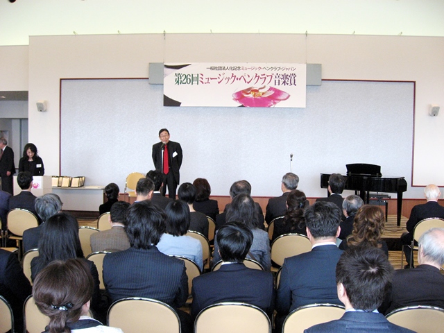 授賞式のはじめに挨拶をする、ミュージック・ペンクラブ・ジャパン会長の貝山知弘氏