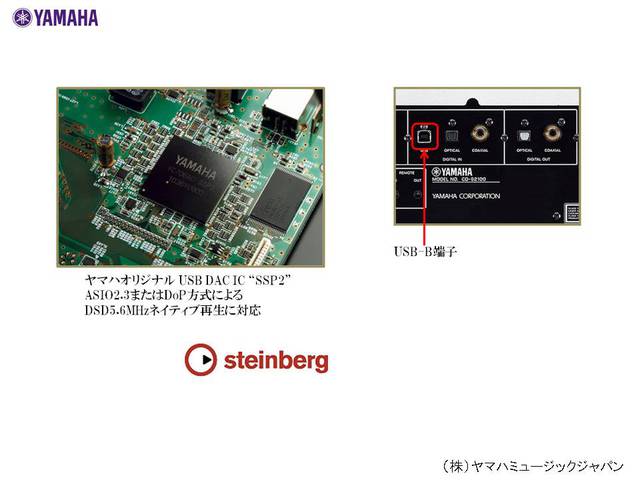 ヤマハオリジナルのUSB-DAC ICとスタインバーグ製ドライバーを装備する
