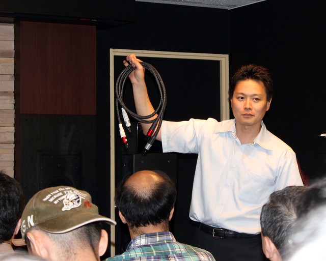 NVS SOUNDのケーブルについて解説するアイレックス朝日英治氏