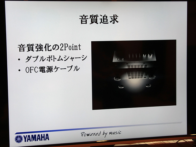 ダブルボトムシャーシやOFC電源ケーブルなど、細部に至るまで音質に配慮した構成としている