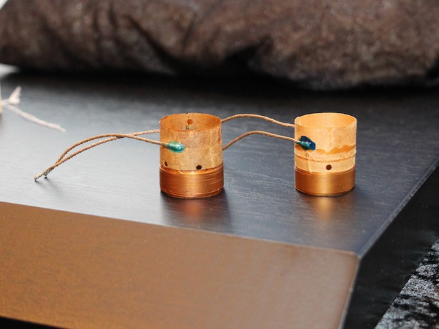 スピーカー内部に人工熟成処理木材の響棒を採用