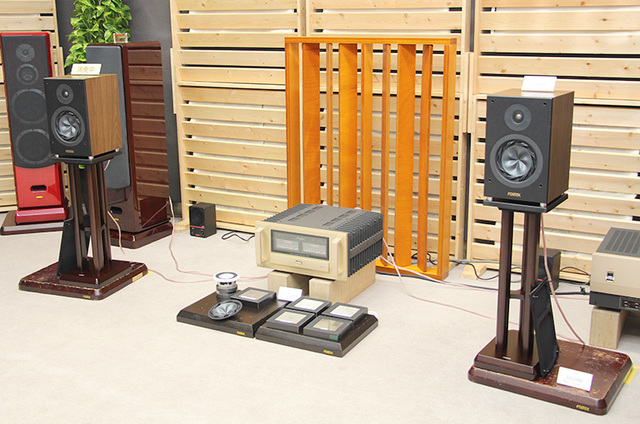 フォステクスのブース。新ブックシェルフスピーカー「GR160」などを聴くことができる。