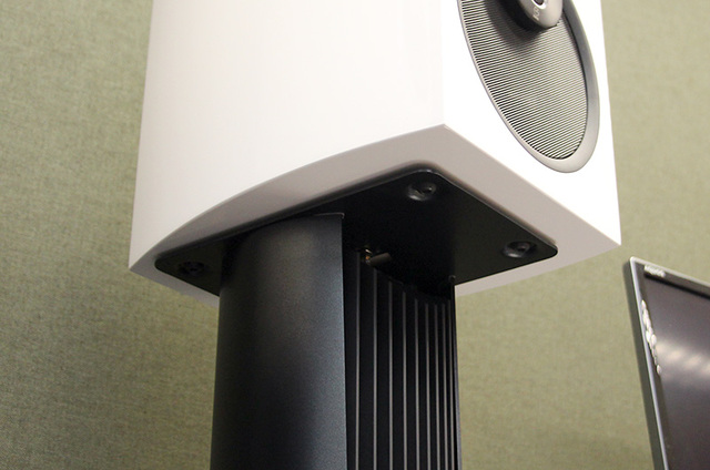 スピーカーの振動がエレクトロニクスに伝達しないよう、スタンド内部でしっかりとサスペンションしている。