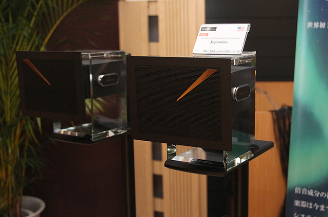 ENIGMA ACOUSTICS社のスーパートゥイーター「Sopranino」。専用スタンドも用意されている。