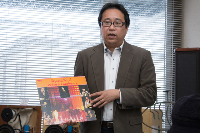 シンコーミュージック吉田聡志氏。ペドロ&カプリシャス「Special Live 1977」のアナログ盤を手に。