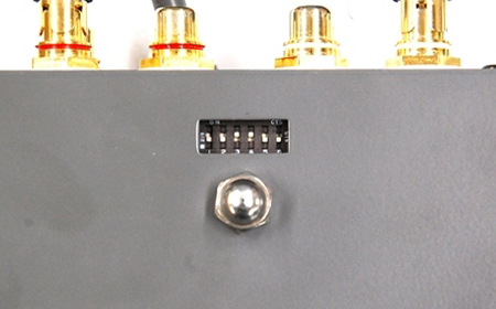 本体底面には入力インピーダンスの切り替え用ディップスイッチを装備