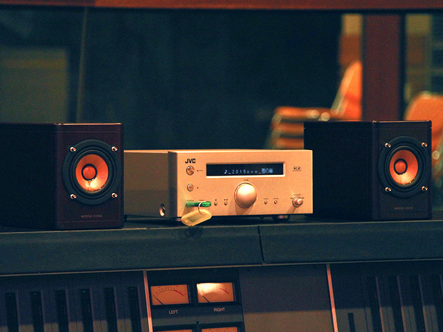 ビクタースタジオでは、各ルームにウッドコーンオーディオを設置している