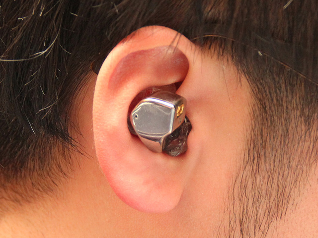 カスタムイヤーチップを装着したTrioを耳に入れたところ