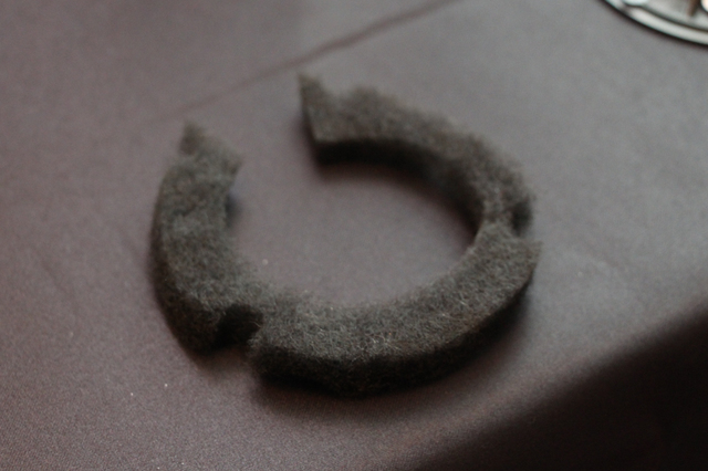 ウールとポリエステルを混合したダンピング材がイヤーカップ内に配置された
