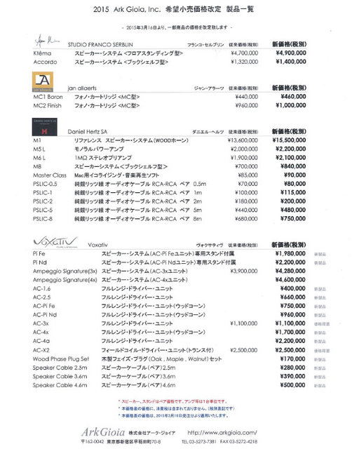 ユキム、スイスのTHALES TONARM製品とBENZ MICRO製品を4月1日から値上げ