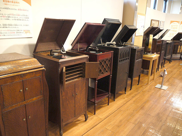 レコード再生用の蓄音機もおびただしい台数が展示。