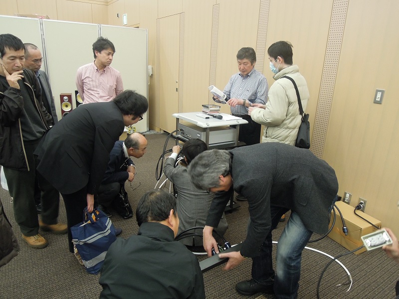 イベント終了後も多くの来場者が質問。新素材ケーブルへの関心の高さがうかがえた