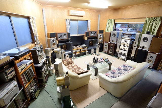 谷内オーディオキャビネットの試聴室。さまざまなアルミ製スピーカーボックス類のほか、堅牢なアルミ製オーディオラックなども製作できる(『季刊analog vol.46』より)