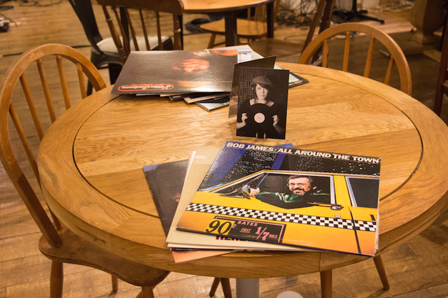 各テーブルには様々なレコードが並べられており、自由に試聴できる