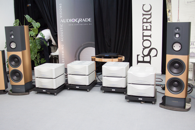 ESOTERICのブースの様子。Grandioso M1を8台用いたマルチアンプシステムを披露した