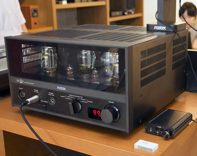 FOSTEXの真空管ヘッドホンアンプ「HP-V8」。右下の小さなポータブルアンプが「HP-V1」