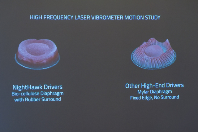 NightHawkのバイオセルロース振動板と一般的な振動板による駆動時の変形の比較
