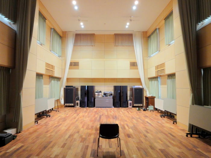広い会場内に設置されたオーディオシステム