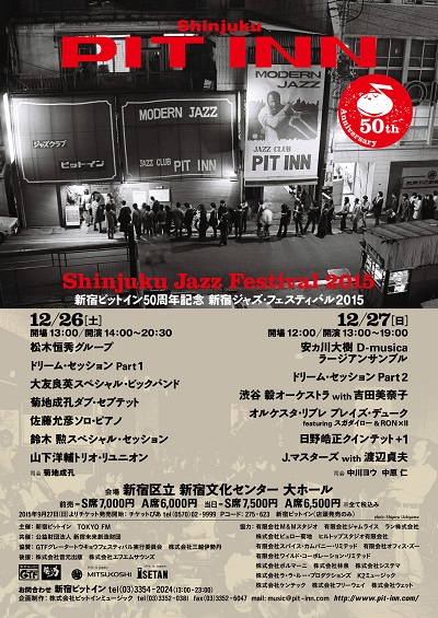 名門ジャズクラブ『新宿ピットイン』50周年記念コンサートが12月26日、27日開催