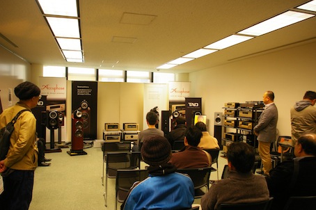 2階のハイエンドオーディオルームではアキュフェーズとTADとB&Wが交替でデモを行っていた。アキュフェーズは、銘機賞金賞を受賞したプリアンプC-3850と銀賞を受賞したパワーアンプP-7300をメインに「オーディオ選びのコツ」をテーマに講演。銅賞受賞モデルB&Wのスピーカー803D3を組み合わせていた