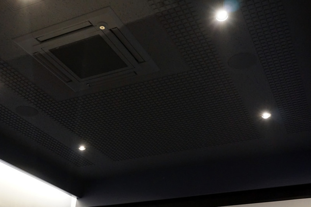 埋め込みスピーカーを採用したり空調のフレームも天井と同じにするなどで目立たなくし、コンテンツへの没入感向上へ配慮