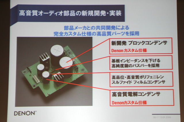 デノン・オリジナルの大容量ブロックコンデンサーなど上位機で採用されたカスタムパーツを惜しみなく投入