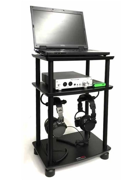 SOUND MAGIC「PC03BB」¥33,000(税別)。最上段はノートPCの設置を想定。下段にはヘッドフォンフックを2つ装備している